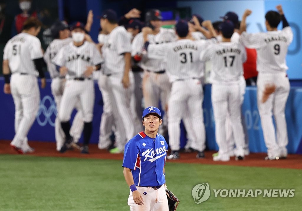 올림픽야구 : 올림픽야구 한일전 일본이기면 결승 진출 패배시 경우의 수까지 - 연장 10회말 승부치기 2사 만루 상황 양의지가 몸에 맞는 공으로 득점하며 승리를 거두자 한국 선수들이 환호하고 있다.